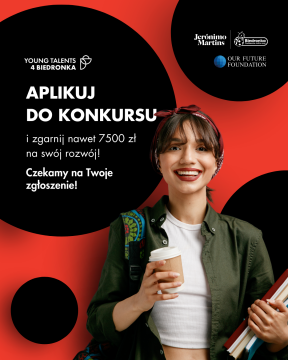 Fundacja Our Future Foundation we współpracy z Jeronimo Martins ogłosiła rekrutację do programu stypendialnego “Young Talents 4 Biedronka”, który ma na celu wsparcie kariery zawodowej ambitnych studentów w wieku 19-25 lat. Wybrani finaliści otrzymają zaproszenie na Bootcamp, podczas którego rozwiną swoje kompetencje miękkie, takie jak m.in. przemawianie publiczne, praca w grupach, czy rozwiązywanie praktycznych problemów biznesowych. Następnie przez kilka miesięcy uczestnicy będą pracować w trzyosobowych zespołach nad stworzeniem innowacyjnych pomysłów, które zostaną ocenione przez kapitułę podczas Gali Finałowej. Zwycięskie drużyny otrzymają stypendia finansowe, vouchery do Jeronimo Martins oraz wstęp na największe wydarzenia edukacyjne w Polsce.